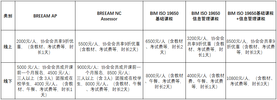 3)BREEAM AP/NC Assessor和BIM ISO 19650线下培训时间:2020年下半年