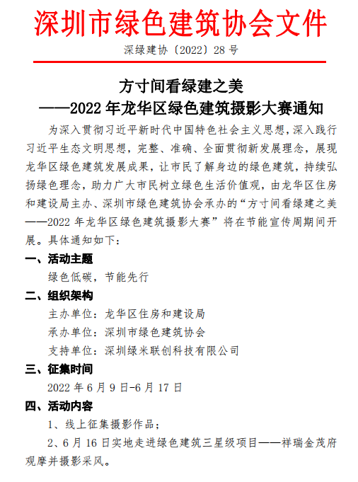 方寸间看绿建之美——2022年龙华区绿色建筑摄影大赛通知