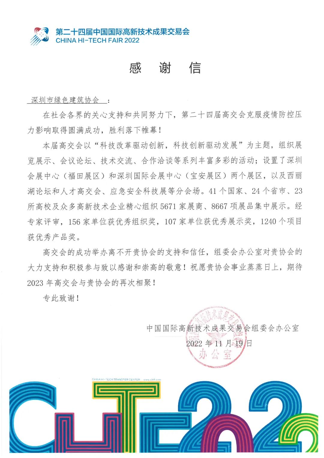 作为高交会“建筑科技创新展”合作组织单位,hth网页版怎么进积极组织发动建筑行业企业参展,并在会期内组织了绿色建筑产品与技术路演、“跑起来盖个章”、“绘出我们的美好家园”等丰富多彩的活动,积极搭建行业展示平台、扩大展区影响力。本届高交会结束后,高交会组委会办公室向协会发来感谢信,并颁发“优秀组织奖”牌匾。
