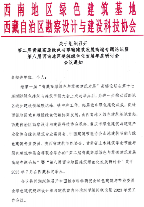 转:第二届青藏高原绿色与零碳建筑发展高端专题论坛暨第八届西南地区建筑绿色化发展年度研讨会通知