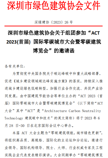附件:关于举办 ACT 2023(首届)国际零碳城市大会暨零碳建筑博览会的通知