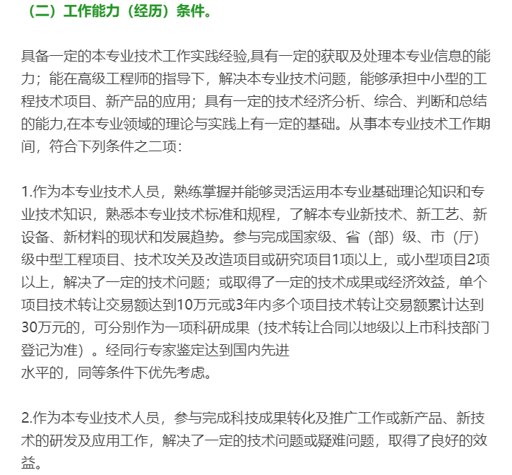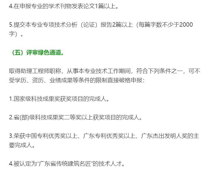 根据《广东省建筑工程技术人才职称评价改革实施方案》(粤人社规【2019】33号)的具体要求,中级工程师申报条件如下: