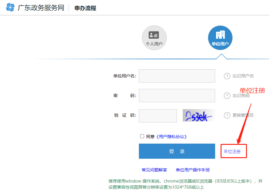 一、单位用户注册(已有账号无需重新注册)