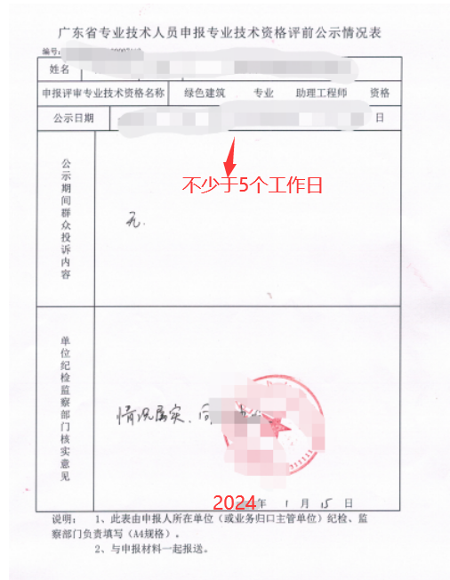 八、公示完成后,填写公示时间和意见