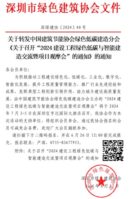 附件:中国建筑节能协会绿色低碳建造分会关于召开“2024 建设工程绿色低碳与智能建造交流暨项目观摩会”的通知
