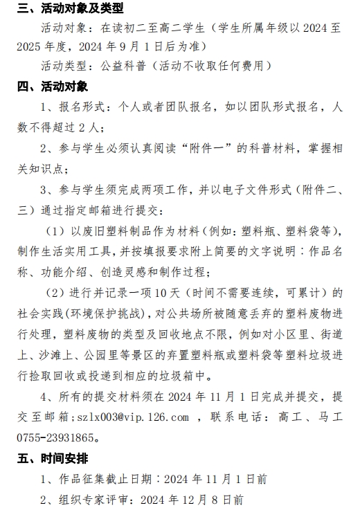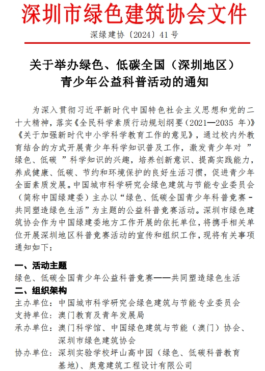 关于举办绿色、低碳全国(深圳地区)青少年公益科普活动的通知