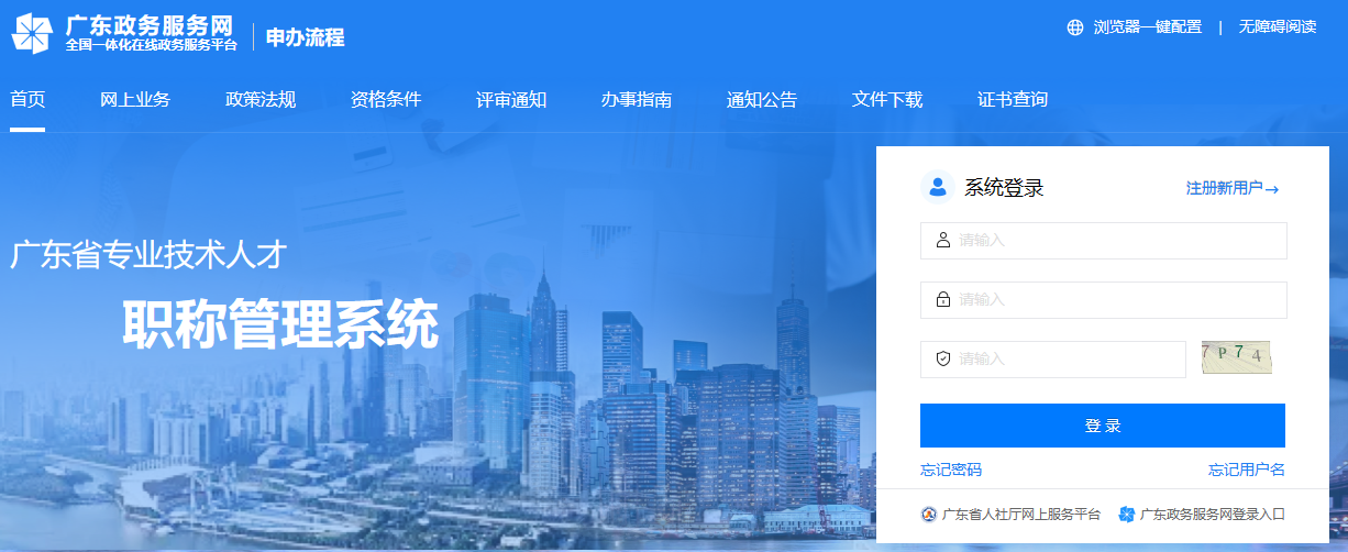 请使用IE8.0及以上浏览器访问系统登录“广东省专业技术人才职称管理系统”网址https://ggfw.hrss.gd.gov.cn/gdweb/ggfw/web/pub/ggfwzyjs.do(或通过登录深圳市人才一体化平台跳转到此网站)。
