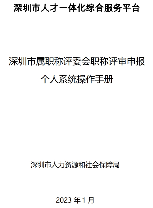 深圳市属职称评委会职称评审申报个人系统操作手册