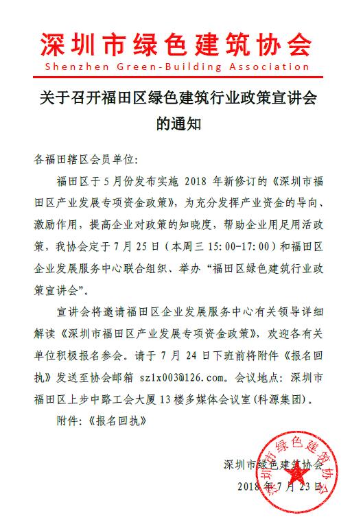 关于召开福田区绿色建筑行业政策宣讲会的通知