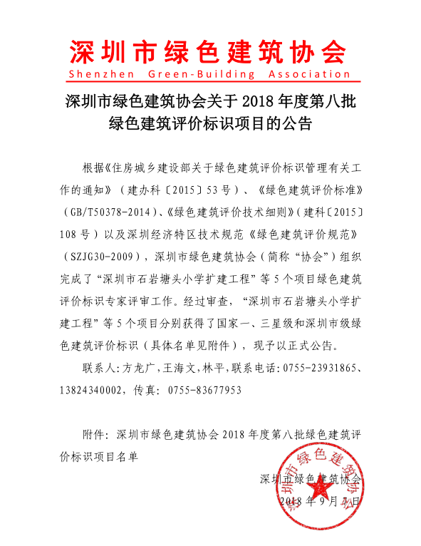 关于2018年度第八批绿色建筑评价标识项目的公告