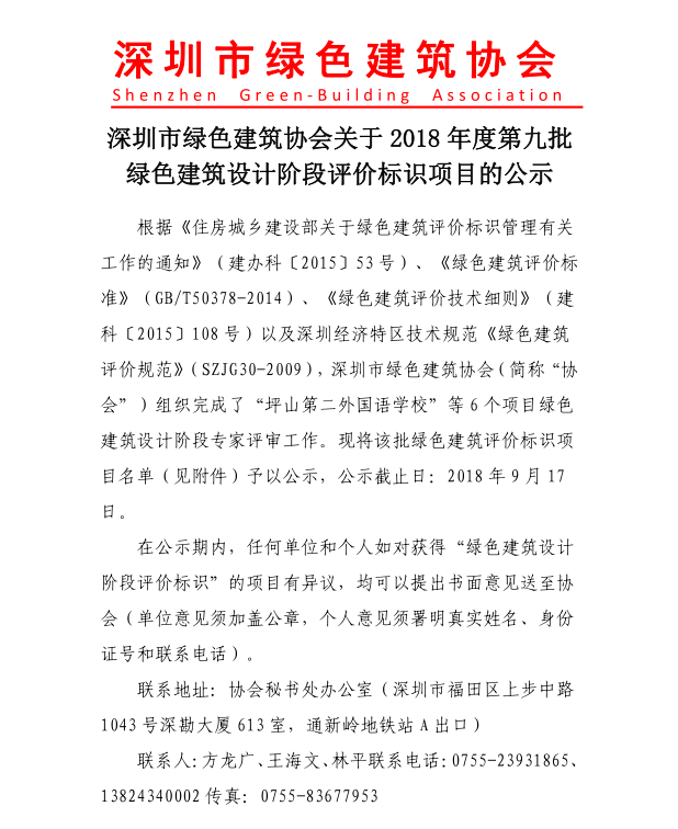 关于2018年度第九批绿色建筑评价标识项目的公示